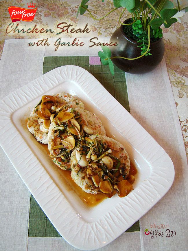 칼로리 대폭 축소 마늘 소스 닭가슴살 스테이크입니다다이어트족을 위한 메뉴 닭가슴살 스테이크를 만들어보았습니다 순살코기 닭가슴살에 여러가지 채소를 넣고기름기 없이 구워 마늘 달래소스를 올려보았어...