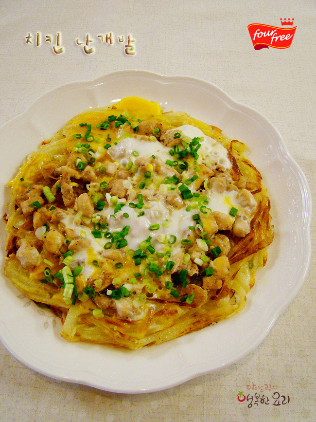 도우 걱정 뚝 치킨 난개발입니다집에서 피자를 만들려면 도우가 문제잖아요감자를 채 썰어 만들면 완전 편해요난개발이란 바로 계란으로 개발한 요리지요 ㅋ좌측 검색창에 난개발로 검색해보셔요재료3인분감자...