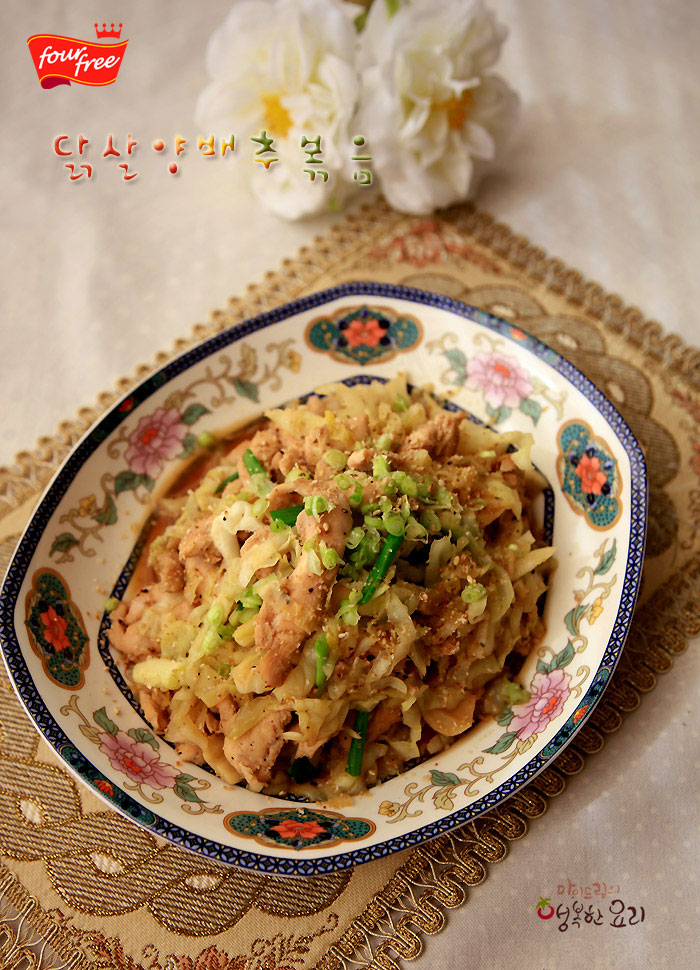 중화풍 닭안심 양배추 볶음입니다중국여행을 갔을 때 반찬으로 채소 볶음이 참 많았습니다 유난히 맛있더라구요 아마도 백알 등 도수가 높은 술을 부어불이 천장까지 확 타올라 독특한 맛이 나기 때문인것 같아...