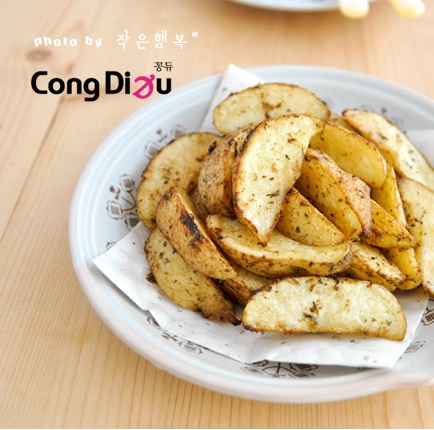 재 료 감자 3개 소금 약간케이준파우더 1Ts 올리브오일 2Ts 설탕 약간 허브가루옵션감자는 껍질째 깨끗하게 씻어서 웨지모양으로 잘라주세요감자는 반으로 자르고 다시 그 반을 34등분해주심 웨지모양이 이쁘게 �...