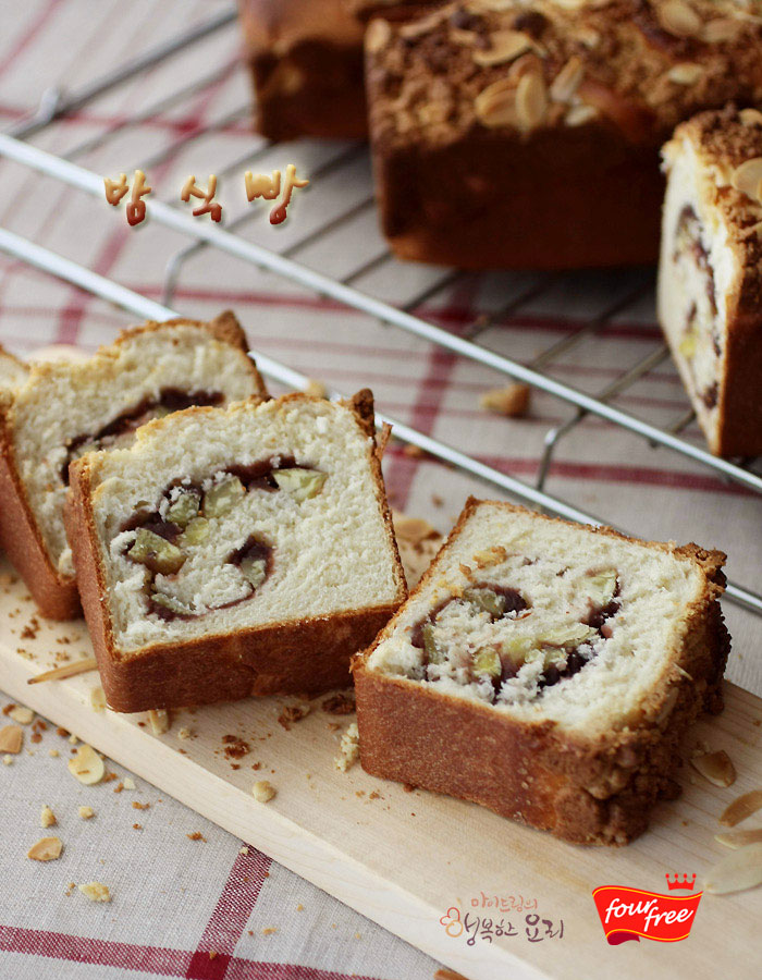 밤식빵 재료식빵틀 3개 분량강력분 480g 중력분 120g 버터 48g계란 2개 미지근한 물 180cc 우유 50cc건조 이스트 30g 분유 18g 설탕 72g 소금 12g밤조림 240g 팥앙금 180g소보로 재료중력분 100g 설탕 60g 버터 50g 땅콩버터 15g계란...
