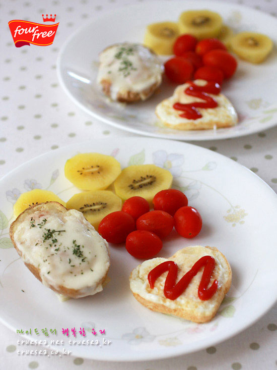감자 중에서 제일 크고 이쁜 것으로 두 개 골랐어요 잘 씻어서 껍질 채 반 갈라 전자렌지에서 45분간 돌려 익혀주었습니다 뜨거울 때 속을 파서 으깨줍니다 속을 팔 때는 껍질을 도톰하게 해야 모양이 살아있어요...