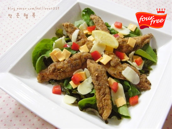 바삭함과 신선함 느낌을 그대로 케이준 치킨샐러드 팸레요리건강간식주말요리 일요일 아침인데도 불구하고 무지하게 일찍 잠이 깨어버렸어요동생이 아침부터 워크샵 간다고 일찍 일어나는 통에 덩달아 저도 일...