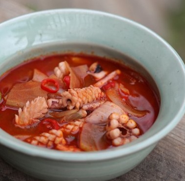 오징어만으로도 깊은맛을오징어짬뽕찌개 재료 오징어 1마리중 양파 14개 무 1토막50그람 썬양배추 13줌 당근 약간 청량고추홍고추 05개씩 멸치다시마육수 15컵 양념 고추기름 25큰술 다진마늘 1큰술 청주 2큰술 국�...