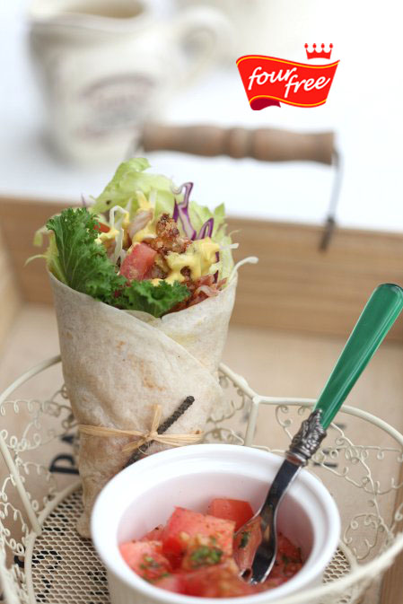 생각만해도 입맛당기는포크스냅랙 재료 또띠아 8 2장 튀긴돈가스 1장 베이컨 2줄 양상추등 각종 샐러드채소 한줌 소스1 칠리소스없으면 케첩 2큰술 고추기름 1작은술고추기름 없으면 약간의 고춧가루소스2 머스...
