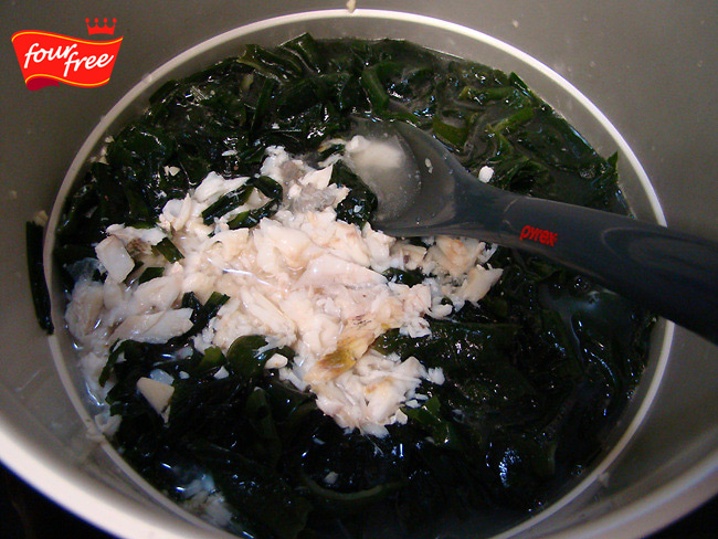 가자미 한 마리는 물을 잘박하게 부어 끓이기 시작 살이 부드럽게 다 익었으면 식혀서 살만 발라냅니다 냄비에 참기름을 1큰술 두르고 다진 마늘 05큰술을 볶다가 불린 미역 두 줌을 넣어 달달 볶아줍니다 여기에 ...