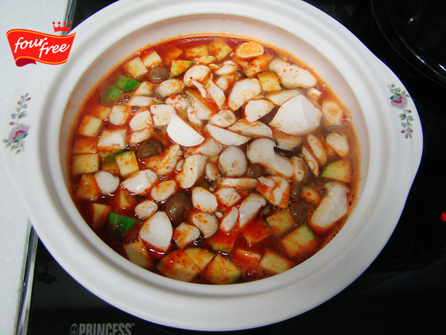 순두부찌개를 끓였습니다참기름에 다진 마늘과 고춧가루 3큰술을 볶다가진한 멸치육수를 3컵 정도 붓고 애호박과 새송이 버섯을 넣고끓이기 시작합니다 여기에 자른 미역을 넣었어요자른 미역은 끓는 국 속에 �...
