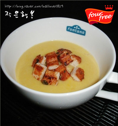 작은행복이 제안하는 크리스마스 요리 ④ 칠리크루통을 올린 크림수프살짝 느끼하지만달콤하고 부드런 스프를 무진장 좋아한답니다 0코스요리나 양식 팸레에서 빠지지 않는 스프를 살짝 업그레이드 해봤답니다...