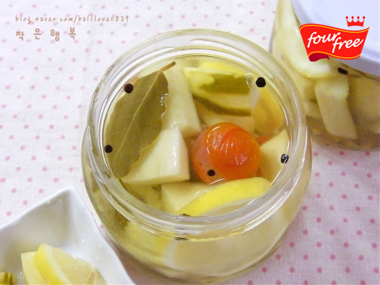 복숭아가 피클이 되던날 레몬 모듬피클주말에 아빠가 산에 갔다오시면서 털복숭아를 좀 얻어오셨더라구요근데 아직 털복숭아가 제철도 아니고 완전 새파란 아이더라구요하나 먹어보려서 깍아봤더니 이건 니맛...