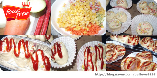 기본 단과자빵 반죽으로 만든 야채빵재료 기본 반죽강력분 225g 우리밀통밀 25g소금 3g 설탕 25g 달걀 25g 우유 135cc 이스트 1ts 오일 25cc야채 토핑 맛살2줄 당근 15개 양파 14개 애호박 약간콘옥수수 12컵야채는 냉장고 ...