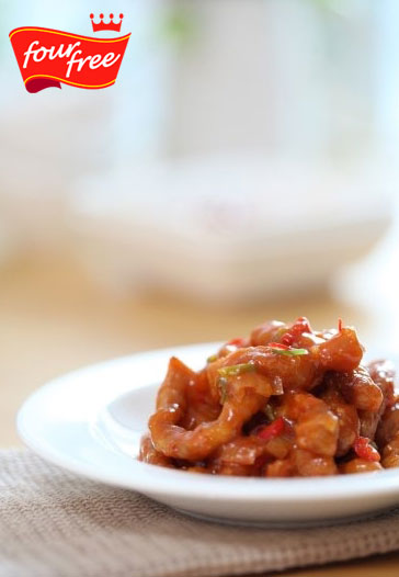 재료 돼지안심 140그람꽁듀 돈가스용 2장 청홍고추 12개씩 썬대파 15큰술분 고추기름 2큰술 녹말가루 2큰술 소스양념 고추장과 케첩 1큰술씩 설탕 1작은술 맛술 1큰술 굴소스05작은술 간장 1작은술 소금약간마무리간...