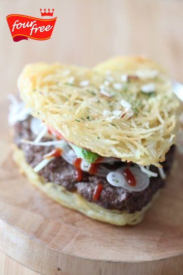 감자스테이크와 버거 재료 감자 1개중 녹말가루 2큰술 소금버터와 포도씨오일각종오일약간씩 패티 및 버거재료 간쇠고기 05컵 조선간장 1작은술 후춧가루약간 포도씨오일각종오일05작은술 청주1작은술 양파와 양...