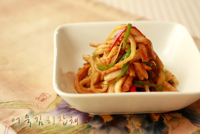 김장김치아직 많으시죠저도 깊은 맛이 든 김치가 냉장고에 잔뜩 있습니다 묵은 김치 죽죽 찢어서 어묵과 함께 볶았습니다 밥반찬으로도 좋고도시락 반찬으로도 짱인 어묵볶음입니다 새콤해서 더 맛있는 순살어�...