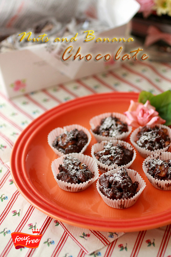 바나나와 쵸콜렛이 만났어요하나는 쌉싸름하고 하나는 촉촉하고 부드럽고정 반대의 성격이 만나 환상커플이 되었지요 여기에 건강에 좋은 견과류까지 합세해서달콤한 디저트가 완성되었습니다 생과일이 들어�...