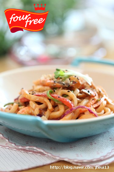 재료 시판우동사리면 1동210그람 오징어 05마리 새우 5마리 양파피망풋고추적채 채썰어 한줌정도 가다랭이포와 흑임자 약간 볶음용오일 2큰술우동버무릴때 오일 1작은술소스 토마토케첩 4큰술 마오네즈 2큰술 우�...