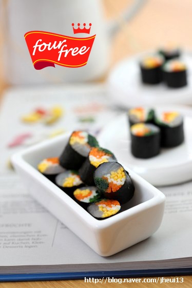 초간단오색회김밥회김밥 4줄재료 김밥용김 2장 생선회광어 등손가락굵기1컵 당근 15개 시금치 8줄기 계란노른자 4개분 계란흰자분 3개분소금과 포도씨등 볶음용오일 약간 곁들이장 와사비장간장과 연와사비 약간...