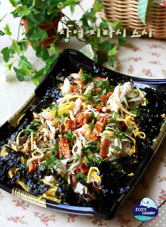 한여름의 더위를 이겨내려면요힘을 내주는 음식을 미리미리 섭취해두면 좋겠지요오늘은 여름 보양식으로 장어요리를 준비해보았답니다 초밥을 지어 그 위에 장어와 버섯을 곁들인 지라시 스시초밥을 지어 그 �...