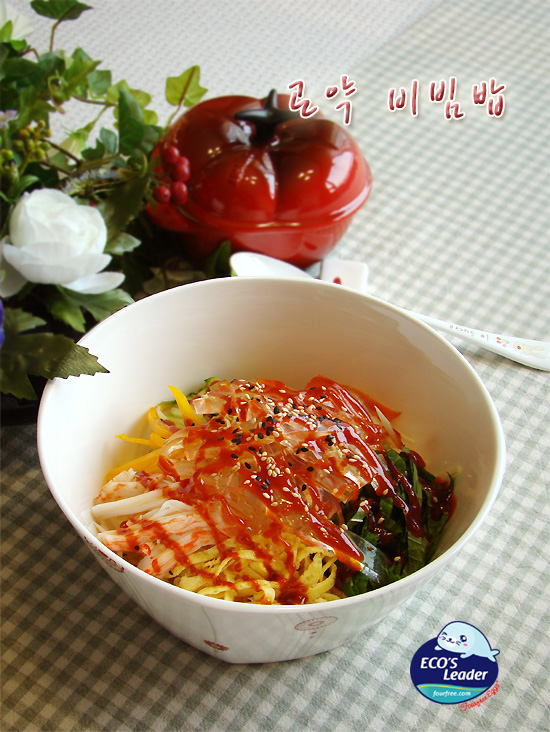 오늘 저녁에는 곤약을 만들어 비빔밥을 만들었습니다 보통 곤약과는 조금 다른 회처럼 먹는 곤약인데요 마치 쫄깃쫄깃한 한치살이나 오징어회와 같은 식감이랍니다다양한 채소와 함께 곤약을 넣어 초고추장에 �...