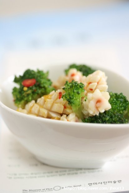 오징어브로콜리냉채재료 오징어 1마리중몸통부분만 브로콜리 15송이작은송이로갈라 15컵고춧가루겨자소스 연겨자와 물 설탕 꿀 1큰술씩 식초 22큰술 맛술 05큰술 간장 06작은술참기름과 고춧가루 03작은술씩 소금...