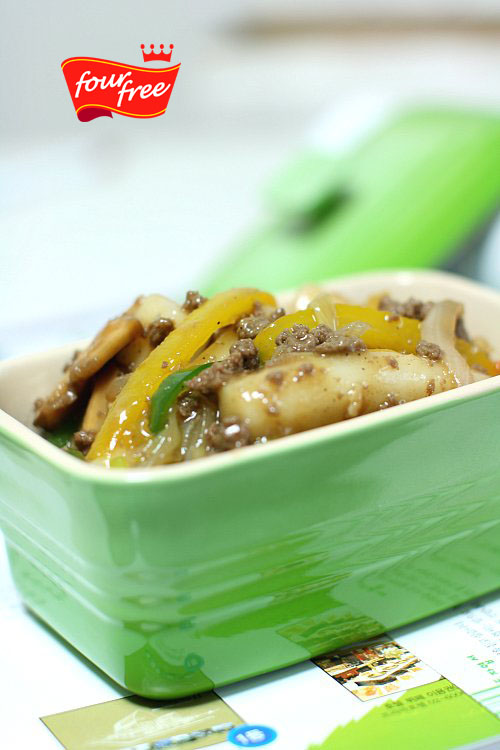 쇠고기떡볶이재료 떡볶이떡 200그람떡볶이용떡 20개 갈아볶은쇠고기 05컵 피망 양파 표고버섯 대파굵게채썬것 07컵 통깨와 볶음용오일약간 떡밑양념 굴소스와 참기름 1작은술씩양념장 굴소스 와 맛술 15큰술씩 다...