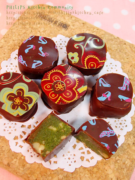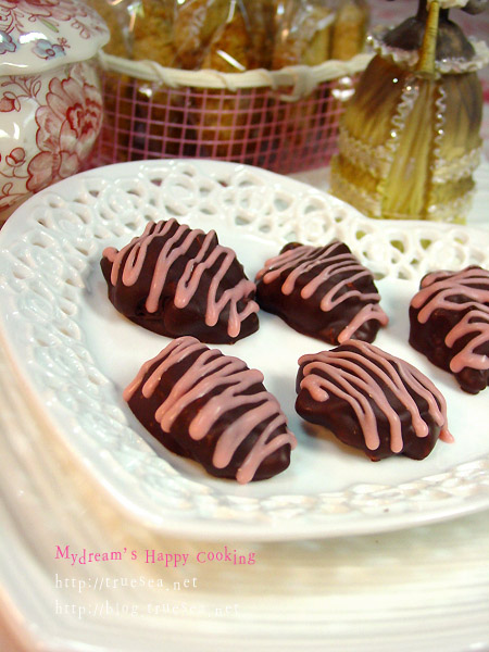 재료 24개 분량다크 커버춰 쵸콜릿 200g 핑크쵸코펜 약간마지판 아몬드가루 100g 허니파우더또는 슈가파우더 100g 계란 흰자 1개건조크렌베리 25g 천연딸기색소 1ts 끼르쉬체리술 1ts먼저 리본모양의 몰드에 가운데 �...