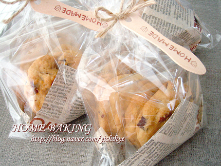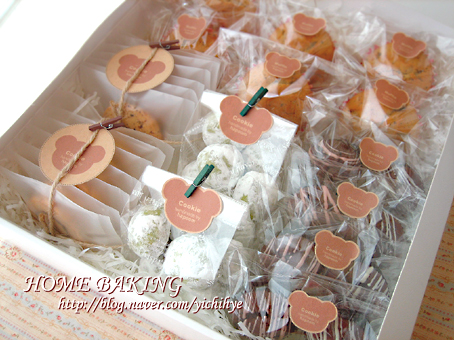 상투과자와 초코칩 쿠키 선물상자 만들기입니당 이번엔 그냥 리봉으로 다 묶어봤어요 쿠키가 크게 구워져서 3개씩 포장하구요뒤엔 상투과자커트러리도 한세트 도일리와 위에 올린후 골판지박스 포장했답니다커...
