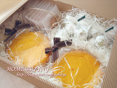 미래 시부모님이 되실지모르시는 분을 위한 홈베이킹 세트주문 메뉴는 단호박 타르트와 녹차 스노우볼 모카 쿠키 단호박 크림치즈 타르트는 색을 일부러 많이 안냈어요 노란색이 선명하라고요 타르트가 안부서�...
