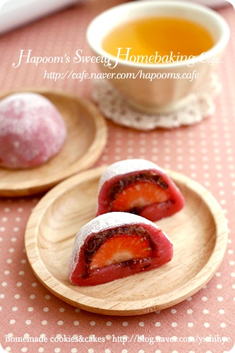 재료는요시판용 찹쌀가루 150g 백련초가루 2g 물 160g 설탕 20g 소금약간옥수수전분 적당히 단팥앙금 100g 생크림30g 설탕 3g 딸기 적당히사용한 찹쌀가루는요 그냥 일반적으로 마트나 슈퍼에 포장해서 팔고있는 가루 �...