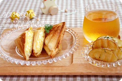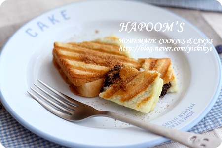 재료달걀 1개 우유 150g 설탕 10g 허니파우다 7g 버터 약간 윗면에 뿌릴 설탕 조금충전할 초코렛 적당히 식빵 4장정도먼저 식빵을 2장씩 겹쳐 4등분빵사이에 달콤한 초코렛을 원하시는만큼 끼워주기전 초코를 빵겉면...