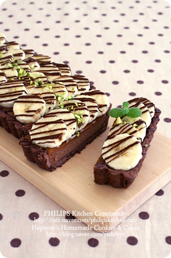 재료는요타르트반죽 박력분 80g 코코아가루 10g 버터 30g 슈가파우다 25g 노른자 1개 우유 2ts치즈반죽 크림치즈 100g 다크초코렛 40g 생크림 30ml 설탕 10g 박력분 1ts 달걀 1개윗면에 올려줄 바나나 2개와 초코시럽 약간�...