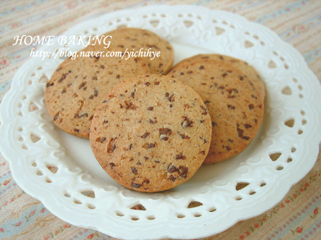 쿠키 재료는요버터 110g 황설탕 90g 달걀 1개 바닐라에센스 조금 박력분 190g 코코아가루 2530g 옥수수전분 60g 베킹파우다 1g 생강가루 8g 넛맥 1g 꿀 10g바닐라에센스 대신 바닐라가루로 가루도 없으심 생략 가능 넛맥도...