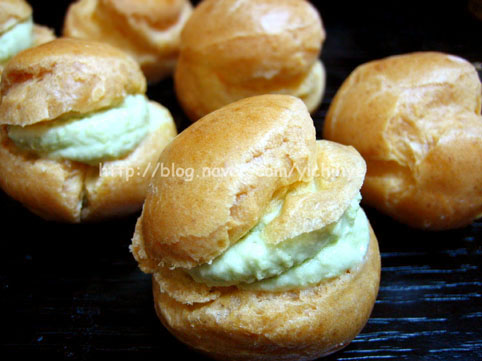 재료는요슈반죽 버터 35g 물 150ml 소금 1g 박력분 75g 달걀 중간크기 3개레몬 카스타드 크림 노른자 2개 설탕 45g 박력분 30g 우유 200ml 레몬즙 2Ts롤케키에 넣고 남은 생크림과 녹차가루 14ts 럼주 14ts슈반죽을 만들어요...