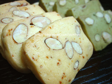 재료는요버터 130g 슈가파우다 85g 노른자 1개 박력분 200g 바닐라오일 34방울 소금 조금 레몬껍질 1개분 통아몬드 130g녹차반죽 녹차가루 1ts 우유 1ts바닐라오일이 없으시믄 바닐라설탕이나 바닐라가루를 조금만 넣�...