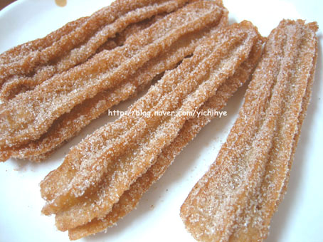 재료는요버터 30g 설탕 10g물 165g 소금 1g 박력분 100g 계피가루 2g 달걀 2개 럼주 8g츄러스를 굴릴 설탕과 계피가루는 취향대로 적당히먼저 버터 물 설탕 소금을 냄비에 넣고 끓여 주세요바글바글 끓기 시작하믄 박력...