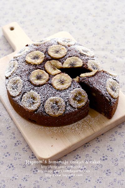 발렌타인에 선물해도 좋을듯한 바나나 초코 케이크랍니다 바나나에 카라멜을 입혀 케이크 반죽에 넣고 헤즐넛파우다를 듬뿍 넣어서 고소하고도 폭신한 그런 초코케이크입지요마이 달지 않아서 간식으로 먹기에...