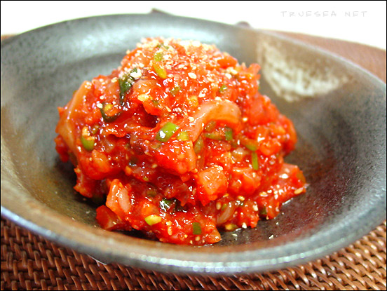 젓갈류는 염분이 많아서 되도록이면 삼가는게 좋지만가끔 입맛없을 때 입맛을 돋궈주기도 하지보통은 오징어젓갈을 사다가 그냥 먹어도 좋지만 이렇게 약간 양념을 가미하면 훨씬 맛나단다재료 오징어젓갈 1�...