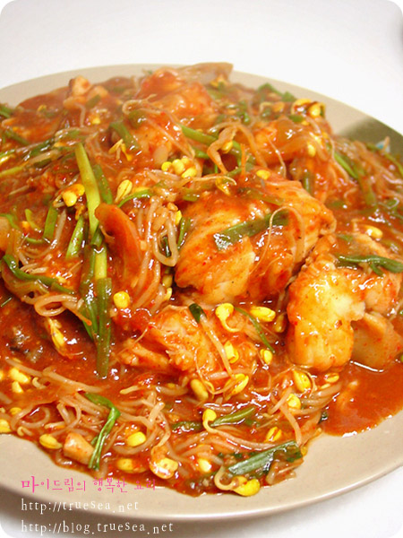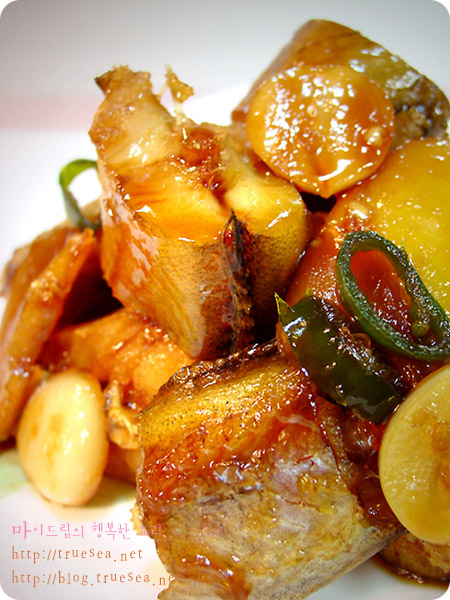 황태에 여러가지 야채를 넣어 고추장양념에 얼큰하게 조려보았어요얼큰하니 밥반찬이 되네요추운 겨울에 찬 바람과 자외선을 맞아가며 잘 마른 황태는우리 몸의 독소를 해독해주는 작용이 아주 탁월하답니다그...