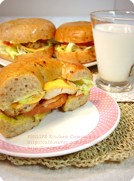 일욜날 아침에 해먹었던 베이글샌드위치에요휴일 아침에는 마음이 느긋해지면서 뭔가색다른게 먹고 싶어지더군요날마다 똑같은 상차림에서 벗어나 다른 걸 내놓으면 기분도 전환되더라구요이런저런 재료들을 ...