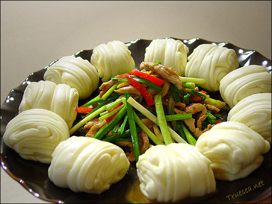 부추잡채와 꽃빵을 만들었습니다 돼지고기와 부추의 향이 참 잘 어울리네요꽃빵은 전자렌지용기 아랫쪽에 물을 붓고 뚜껑을 닫아 김이 모락모락 올라오게 쪘어요 재료 돼지고기50g 호부추50g 노랑 빨강 파프리�...
