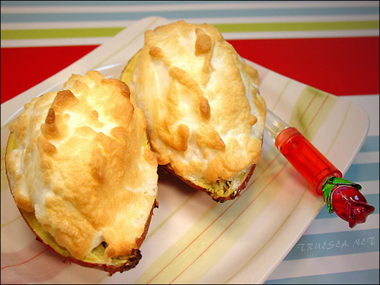 오늘 낮에 점심식사를 푸짐하게 했더니 저녁식사를 별로 하고 싶지 않더라구요 그래서 고구마에 머랭을 얹어 오븐에 구워서 과일과 요구르트로 때웠어요 버터를 고구마 속에 넣어서 고소하고 부드러운 머랭과 �...