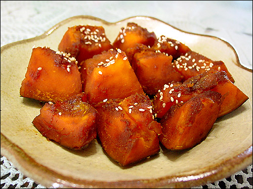 단호박 반개가 남아있어서 간장을 넣고 조려보았어요 밥반찬으로 괜찮네요단호박 반개를 전자렌지에서 5분정도 돌려 반쯤 익힌 후에 껍질째 적당한 크기로 썰어서 물 1컵 간장5Ts 맛술3 설탕2을 넣고 중불에서 조...