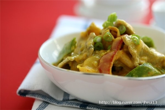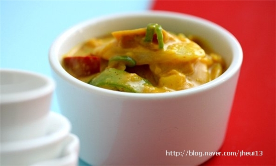카레소스재료 청홍피망 12개씩 슬라이스햄 4장 양송이버섯 2개 다진쪽파대파1큰술분 물엿 1작은술 올리브유소금후춧가루 약간향신재료 양파 13개 다진마늘 05큰술분 청량고추 12개카레소스재료오뚜기카레가루 3�...