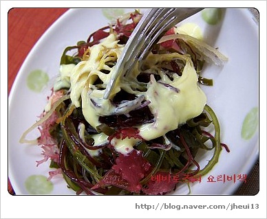 주로 마트 모듬나물파는코너 근처에 있을 겁니다모듬해초염장식으로 되어있어 소금이 허옇게 뿌려졌을 거예요그 염장해초를 구입해찬물에 23번 헹궈 우선 소금을 제거하고23시간 이상 담가 충분히 간기를 우려�...