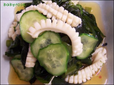 재료입니다오징어 몸통쪽으로 반마리 물미역 2줄기 오이 작은걸로 반개입니다칼집넣은 오징어는 데쳐주고물미역은 끓는물에 소금 약간 넣어 넣고 살짝 휘젓는 정도로 데쳐찬물로 여러번 헹궈준 후대강 헹구면 �...