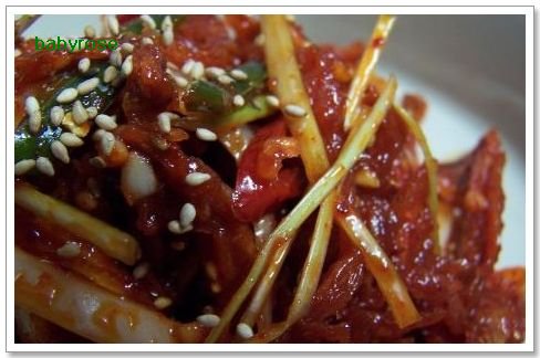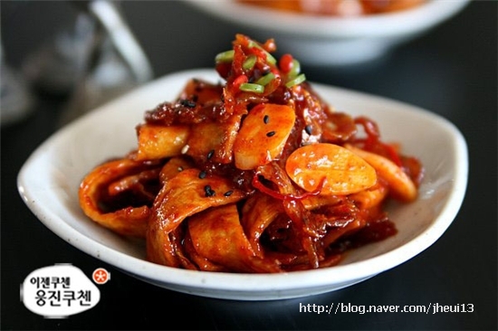 마땅한 반찬 없이 물말아 먹을땐건어물이 그만이죠북어포를 새콤달콤하고 무쳤습니다 북어포 초무침북어포 70그람정도 고추붉은고추 1개씩과 양파 40그람정도실파 3뿌리정도저는 실파없어서 대파 길죽하게 했�...