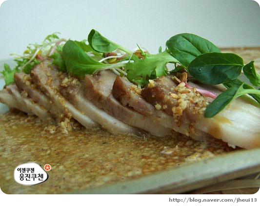 참깨소스를 얹은 삼겹살 찜재료 통삼겹 600그람 샐러드 채소 향신기름기타 오일종류적당량조림장 물 3컵 간장 12컵 청주 1컵 설탕 2큰술 생강 1쪽엄지 23크기 통마늘 5쪽깨소스 통깨 3큰술 맛술 2큰술 간장 2큰술 �...