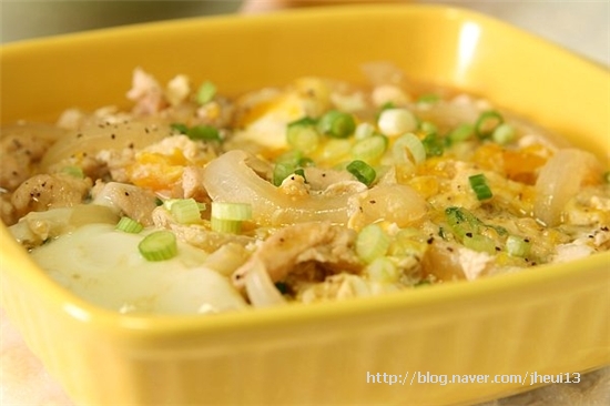 진한 가다랭이맛과 부드러운 달걀 반숙맛이 일품인 일식달걀찜부드럽게 척척 감기는 맛이 아주 좋아요오야코 돈부리적은량의 2인분재료 달걀 3개50그람짜리 아주 작은것 큰것은 2개 닭가슴살 1쪽100그람 양파 14�...