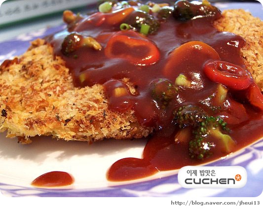 야채돈가스브로콜리 송이부분을 아주 잘게 분리하고황홍 파프리카는 링썰기브로콜리는 끓는물에 약간의 소금을 넣고 20초 정도 데친 후찬물에 헹구어 물기 쏙 빼놓고달군 팬에 약간의 오일을 두르고 파프리카�...