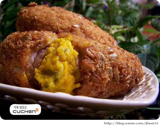단호박 롤가스재료 돈가스용고기돼지 안심 4장 단호박 13통중 밀가루 12컵 빵가루 1컵 계란 2개해바라기씨 12컵 물 1큰술분 피자치즈와 소금 식용유 적당량고기밑간 우스터소스1큰술 양파즙 2큰술 후춧가루 13작은...