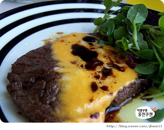 치즈스테이크재료 쇠고기안심 등 스테이크용 쇠고기 1쪽 슬라이스치즈와 피자치즈 베이비채소 적당량쇠고기밑간 약간의 우스터소스 후춧가루 양파즙소스 발사믹식초발사믹비네거 2 올리브오일 05의 비율유�...